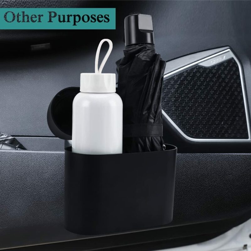 - Multi-function: The car trash bin can be hung car door “pocket”, easy to install, it also can be used in car, home, office, can be used as trash can, ashtray, cup holder or coins holder.