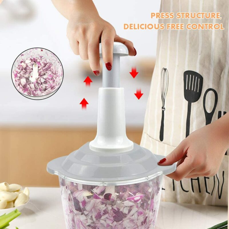 EASY CHOPPING:With an easy push-down handle for chopping, it’s excellent for multi-preparation foods like onions, garlic, almonds, and so on. A must-have kitchen gadget for preparing fast snacks and flavouring food.