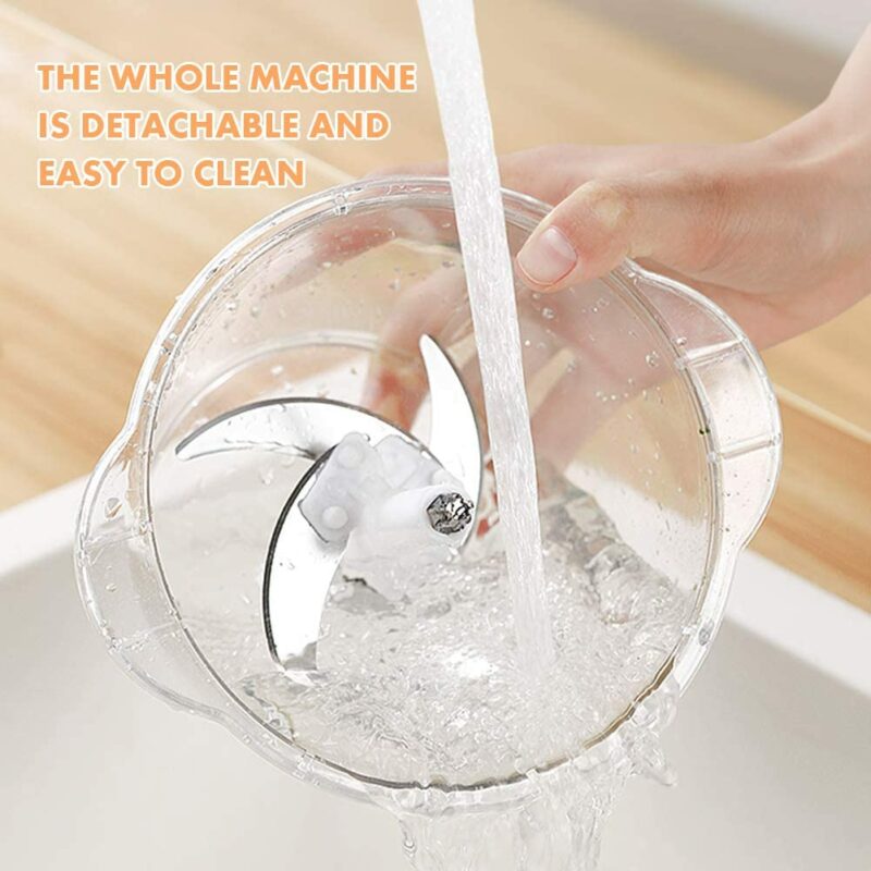 HIGH QUALITY, FOOD SAFETY: This food chopper comes with stainless steel blades that are super sharp and free of ABS.