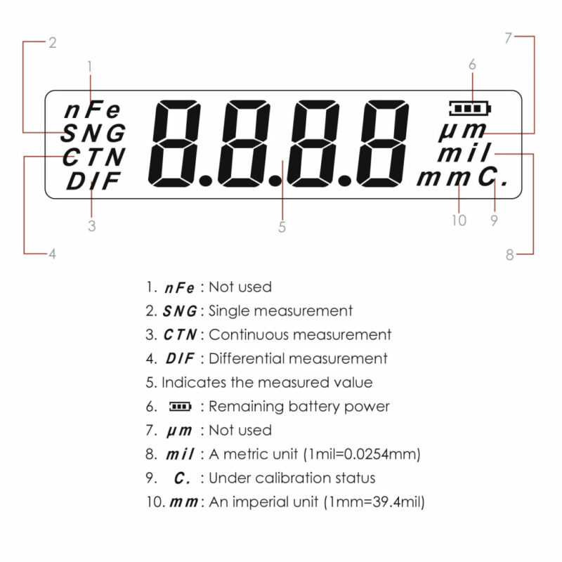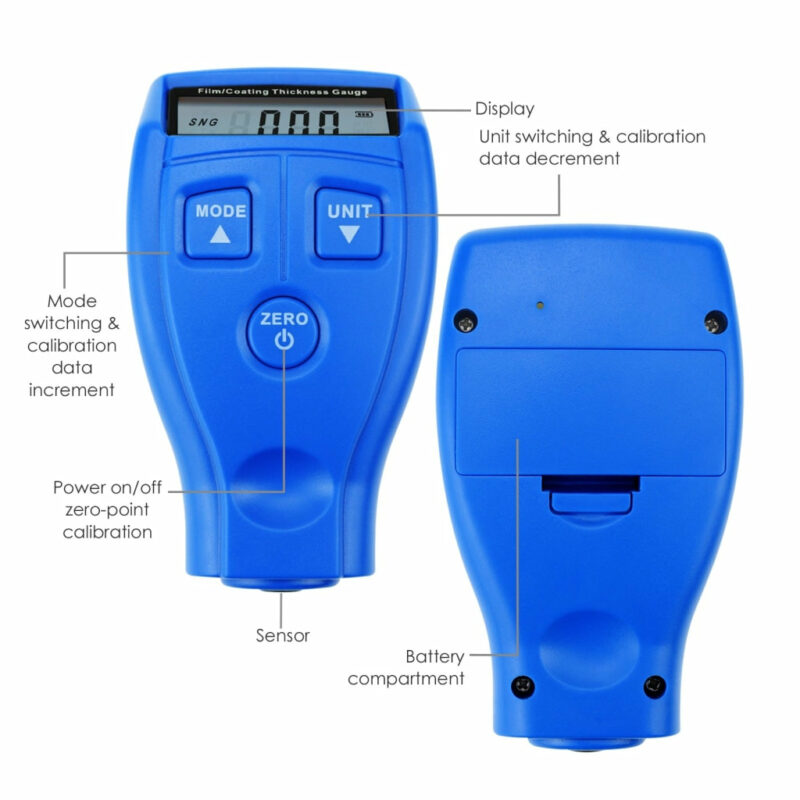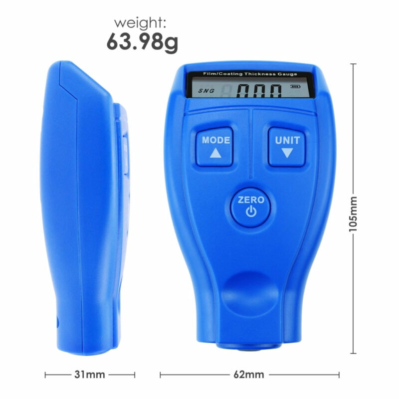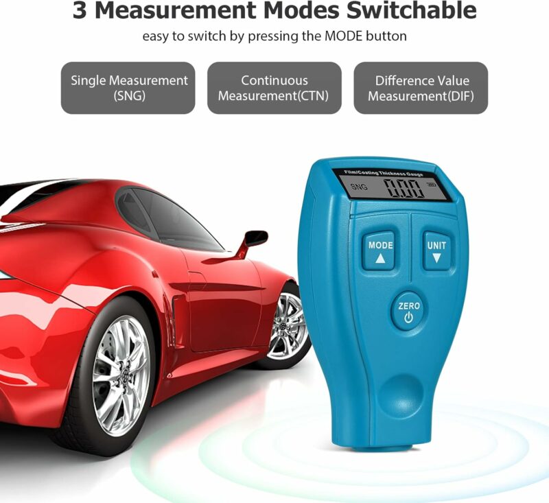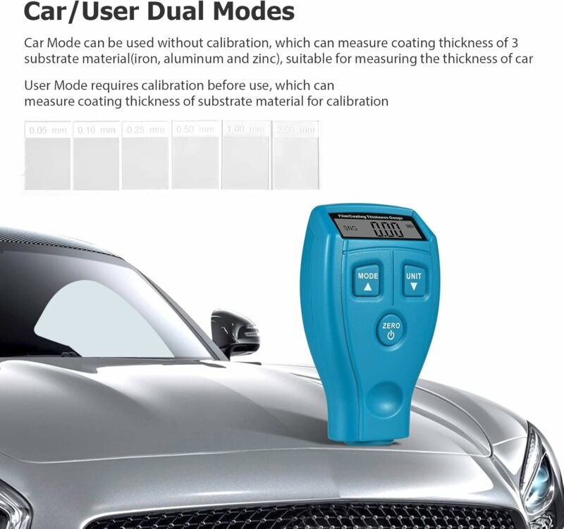This digital coating thickness gauge is designed for measuring the non-metallic coating thickness on the metal surface. Paint Thickness Gauge Meter Coating is easy and quick to detect car paint thickness; rapid acquisition and accurately calculate the coating thickness. Energy-saving, this tester will automatically shut down when there is no measurement in 1 minute. Widely used in manufacturing, automotive industry, metal processing, chemical industry, commodity inspection and other industries.