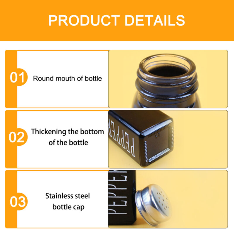 With the words of salt and pepper bottles, to know what seasoning is inside without getting confused. and funnel are provided to facilitate you to clean the bottle and refill the seasoning.