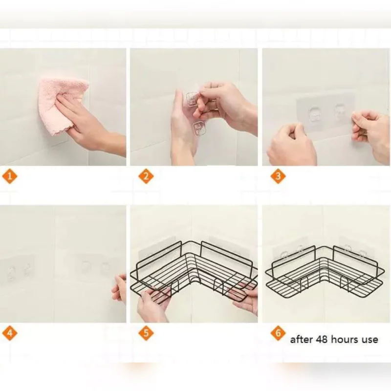 - No drilling installation: Our shower basket is easy to install. First clean the wall and make sure that the space is to be installed. Remove the stickers and press. No tools, no L, no snagging to your W. Removable and reusable.